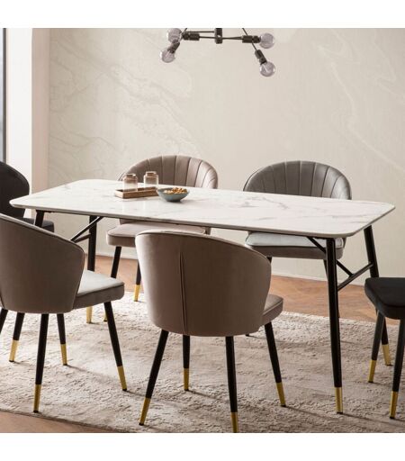 M&s - Table à manger 160x80x76 cm effet marbre blanc et pieds métal - trazi