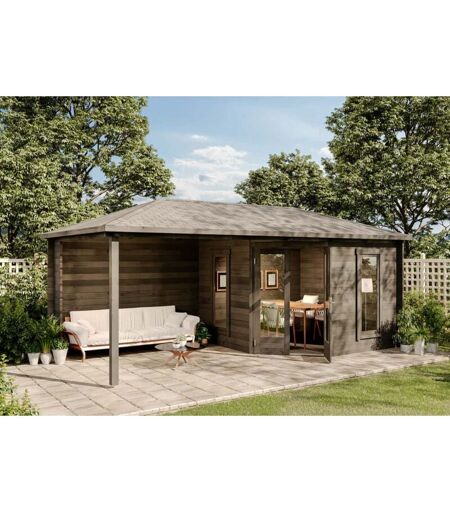 Alpholz - Koop het 5-hoekig Tuinhuis Liwa-28 met overdekt Terras & hoge kwaliteit gelijmd hout dubbele deur +++ Bestel nu bij de specialist Gris