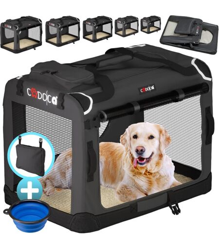 Description générale La cage de transport pliable est conçue pour offrir un espace confortable et sécurisé à vos animaux de compagnie. Avec sa couverture douce et son tapis en mousse isolant de 10 mm, elle garantit chaleur et confort. Sa construction en acier pliable permet un montage et un démontage faciles, tout en étant peu encombrante pour le rangement. Spécifications techniques Dimensions Taille S (LxlxH) : 50x34x36 cm Dimensions Taille M (LxlxH) : 60x42x44 cm Dimensions Taille L (LxlxH) : 70x52x50 cm Dimensions Taille XL (LxlxH) : 82x56x58 cm Dimensions Taille XXL (LxlxH) : 90x60x66 cm Dimensions Taille XXXL (LxlxH) : 101x70x70 cm Matériau tissu : 100% Polyester (600D Oxford) Matériau couverture : Couche supérieure : polaire, Couche intermédiaire : mousse, Couche inférieure : polyester Matériau cadre : Métal léger et robuste Couleurs disponibles : Rouge foncé, bleu marine, anthracite, gris Compatibilité et accessoires Compatible avec tous les animaux de petite à grande taille ...