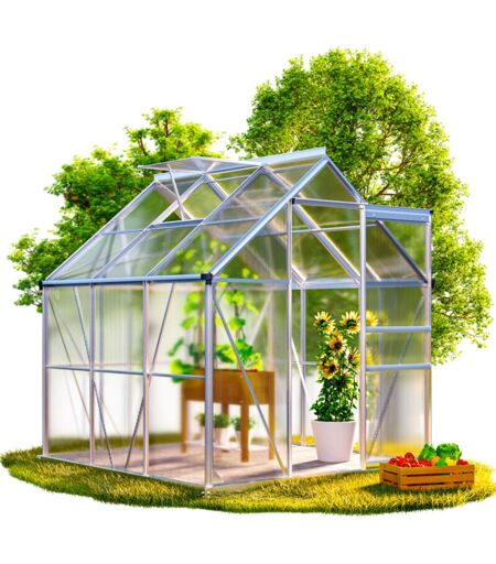 GARDEBRUK® Serre de jardin aluminium 3,6m²-7,2m² serre polycarbonate serre à tomates plantes légumes potager semis porte coulissante lucarnes 190 x