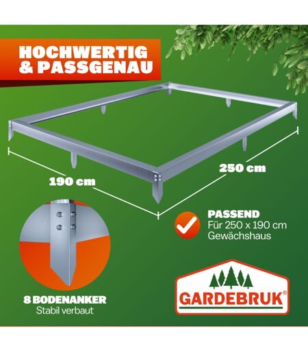 Gardebruk - Fondation serre de jardin acier galvanisé cadre en acier matériel de montage fixation sol embase serre aluminium polycarbonate 250x190cm