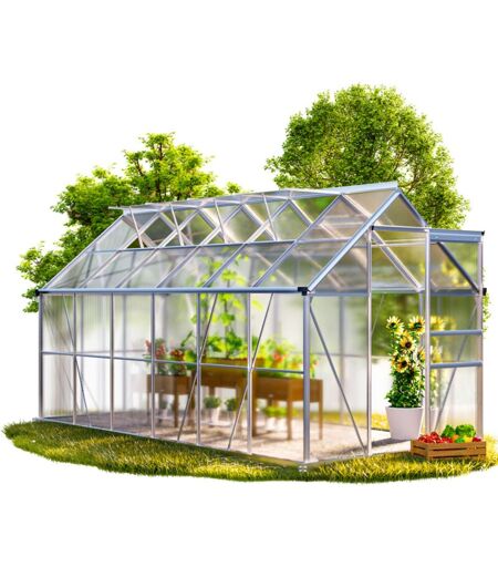 Gardebruk - Serre de jardin aluminium 3,6m²-7,2m² serre polycarbonate serre à tomates plantes légumes potager semis porte coulissante lucarnes