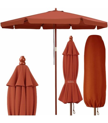 KINGSLEEVE Parasol de jardin en bois ø 330 cm Pare-soleil avec protection UV50+ Protection solaire jardin terrasse extérieur Terracotta
