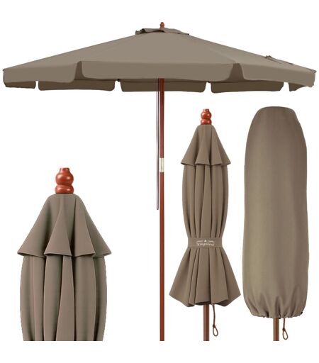 KINGSLEEVE Parasol de jardin en bois ø 330 cm Pare-soleil avec protection UV50+ Protection solaire jardin terrasse extérieur Taupe