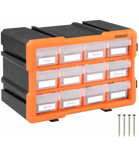 Profitez de nos boîtes pour ranger vos petites bricoles ! Grâce au système à rainure et languette , les boîtes de rangement pour petites pièces de monzana® sont combinables et extensibles entre eux. Toutes les boîtes sont munies de parois de séparation amovibles afin que vous puissiez personnaliser la taille des compartiments . Les tiroirs robustes disposent d'une butée sur les extrémités empêchant de glisser en dehors lorsqu'ils sont tirés trop fort. À l'arrière de la caisse de rangement se trouvent 4 trous de fixation permettant une installation murale. De plus, 4 vis par boîtes sont incluses dans la livraison. Fini les vis et petits objets volants ! Découvrez nos boîtes d'assortiment monzana® ! Parfait pour ranger les vis, les outils et les petits objets de toutes sortes. Compact, robuste et design moderne ! Modèles selon le nombre de compartiments : Set complet : 72 compartiments 36 compartiments Système de boîtes : 24 compartiments 8 grands compartiments 4 très grands ...