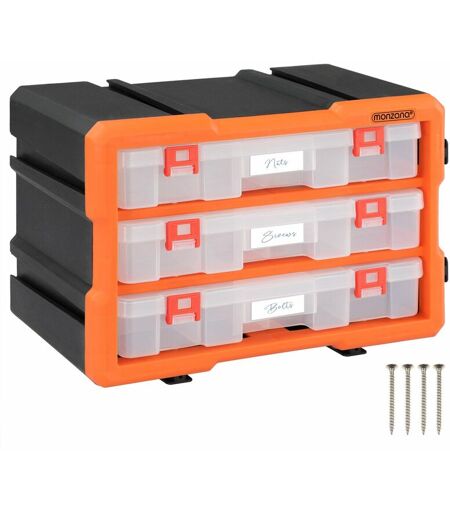 Profitez de nos boîtes pour ranger vos petites bricoles ! Grâce au système à rainure et languette , les boîtes de rangement pour petites pièces de monzana® sont combinables et extensibles entre eux. Toutes les boîtes sont munies de parois de séparation amovibles afin que vous puissiez personnaliser la taille des compartiments . Les tiroirs robustes disposent d'une butée sur les extrémités empêchant de glisser en dehors lorsqu'ils sont tirés trop fort. À l'arrière de la caisse de rangement se trouvent 4 trous de fixation permettant une installation murale. De plus, 4 vis par boîtes sont incluses dans la livraison. Fini les vis et petits objets volants ! Découvrez nos boîtes d'assortiment monzana® ! Parfait pour ranger les vis, les outils et les petits objets de toutes sortes. Compact, robuste et design moderne ! Modèles selon le nombre de compartiments : Set complet : 72 compartiments 36 compartiments Système de boîtes : 24 compartiments 8 grands compartiments 4 très grands ...