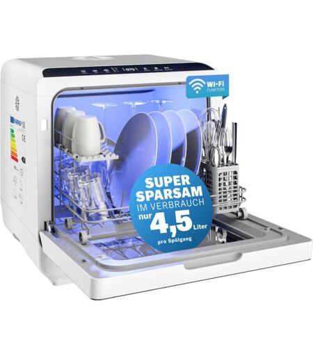 MONZANA® Mini lave-vaisselle Noir-blanc 46x45x44 cm 4,5L petit lave vaisselle 3 couverts 6 programmes App étudiants couples