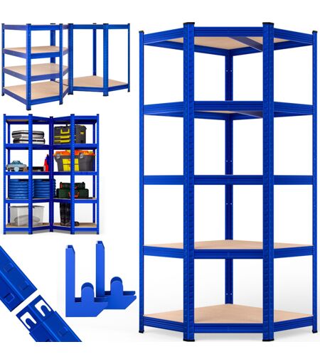 MONZANA® Étagère charge lourde 180x70x40cm Etagère d'angle 5 plateaux max. 875 kg Etagère de rangement en acier Bleu