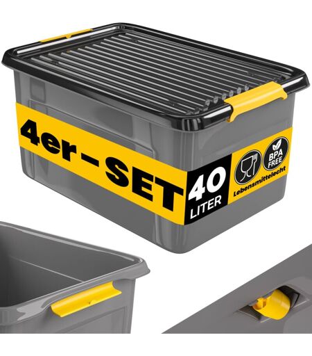 MONZANA® Caisse de rangement robuste avec couvercle hermétique empilable sans BPA gain de place caisse de rangement organisateur 4x 40 L