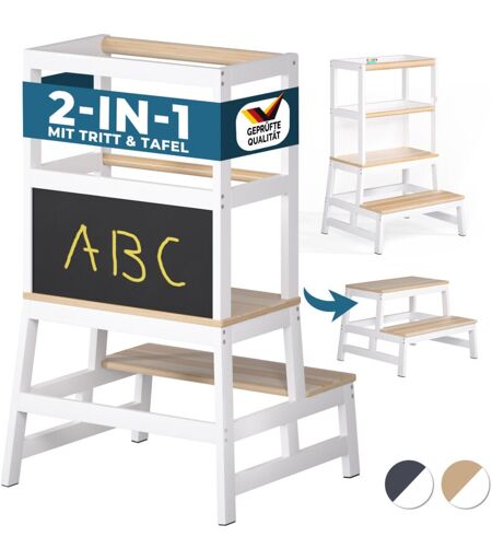Spielwerk - Tour d'Observation Montessori Enfant dès 18 Mois Sûr et Sécurisé Tour d'Apprentissage évolutive Learning Tower Blanc nature
