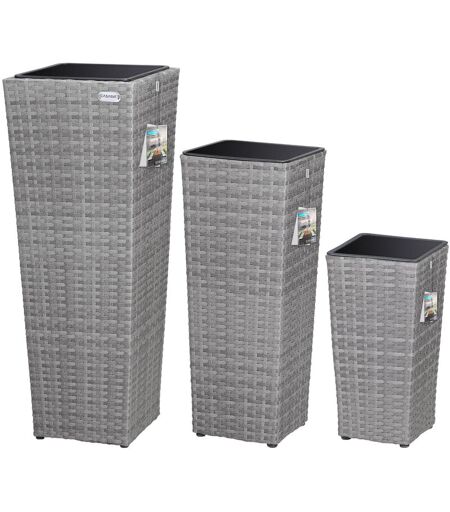 Deuba Set de 3 pots de fleurs bac à fleurs polyrotin pot intérieur amovible 3 couleurs résistant aux intempéries et uv design élégant intérieur et
