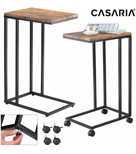 Casaria - Table d'appoint bout de canapé avec roulettes Cadre en métal Desserte de lit Support ordinateur portable Noir