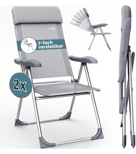 Casaria Lot de chaises de jardin pliables réglables en 7 positions en aluminium avec dossier haut fonction couchage camping voyage 2er Set Grau Melange (de)