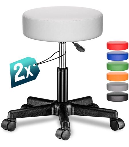 Casaria Tabouret Siège Réglable en hauteur Pivotable 360° Plusieurs couleurs au choix Set de 2 blanc