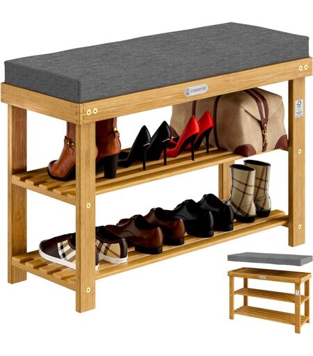 Casaria - Banc à chaussures en bois d'acacia certifié fsc® 2 niveaux assise rembourée rangement polyvalent 9-12 paires 70 cm