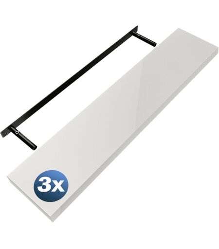Casaria - 3x Étagères murales flottantes mdf robuste effet flottant support de fixation inclus étagère bois rangement livre 110 cm Blanc brillant