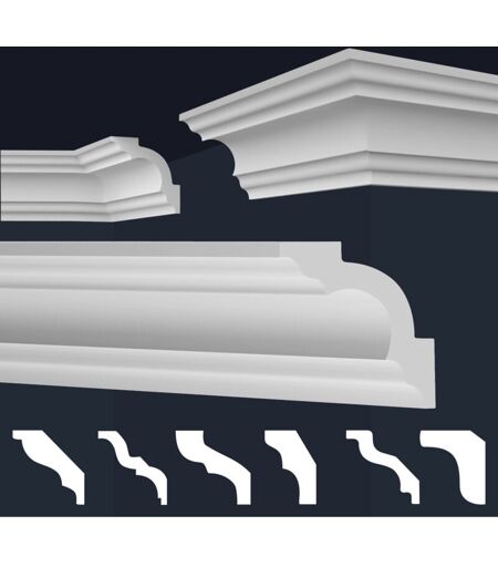 MARBET DESIGN Moulures en stuc blanc et clair, coffrage XPS Styropor, paquets d'épargne Marbet Series-E: E-16 / 96x96mm, 1 coin intérieur / 1 coin extérieur