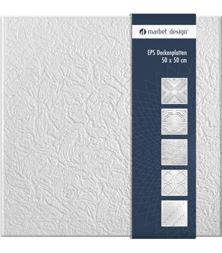 Paquets économiques de dalles de plafond Marbet de différents motifs, dimensions par dalle: 50 x 50 cm, matériau: polystyrène expansé / EPS, couleur: blanc, densité: environ 40 kg/m³ Des possibilités de conception fascinantes - Les dalles de plafond décoratives donnent à votre maison une touche personnelle et un style de vie unique Léger et décoratif - le PSE (polystyrène expansé) est un polystyrène expansé avec une structure de mousse à pores grossiers, ce qui permet d'obtenir un style extravagant et des motifs prononcés. Le matériau a une surface à motifs, est très léger, facile à nettoyer et indéformable. Une décoration d'intérieur originale avec des dalles de plafond pratiques en 30 modèles différents. Le plafond est, en raison de sa grande surface, la partie la plus importante de la pièce et peut changer complètement les caractéristiques de la pièce grâce à un design créatif. C'est pourquoi il est important de choisir le bon panneau de plafond. Marbet Design offre une solution ...
