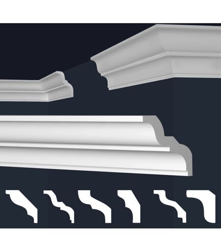 MARBET DESIGN Moulures en stuc blanc et clair, coffrage XPS Styropor, paquets d'épargne Marbet Series-E: 2 mètres / 1 bande, E-20 / 60x65mm