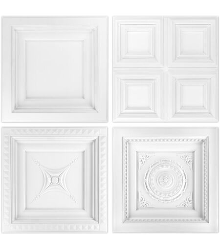 Dalles de plafond Grand Decor R210, dimensions: 600 x 600 x 40 mm, densité environ 220 kg/m³ Design intemporel - Réalisez une décoration de plafond impressionnante avec nos dalles de plafond en polyuréthane. Robuste et stable - Le polyuréthane (PU) est une mousse rigide avec une structure de mousse uniforme. Le matériau est léger, facile à nettoyer et très robuste. Des dalles de plafond de haute qualité et résistantes aux chocs pour une atmosphère de vie harmonieuse ! Avec nos dalles de plafond en polyuréthane, nous vous proposons une manière créative d'aménager votre chambre. Dites adieu à la monotonie ennuyeuse ! Créez votre propre style unique et donnez une touche personnelle à votre plafond. Les dalles de plafond originales de Grand Decor sont d'excellents éléments de conception efficaces et dissimulent également les fissures, les irrégularités ou autres défauts inesthétiques similaires. L'installation de sous-structures, qui prend beaucoup de temps, peut être supprimée, car nos ...
