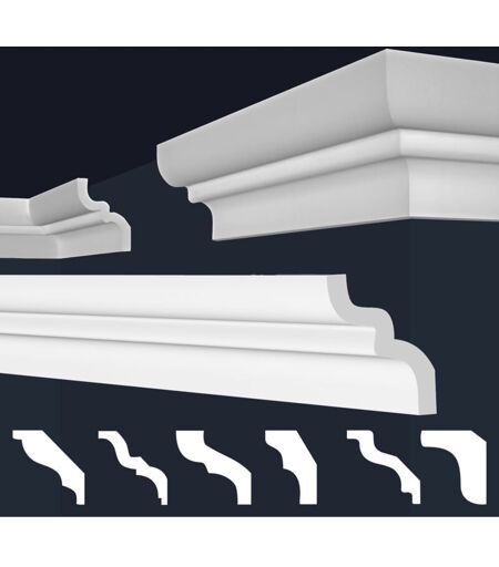 MARBET DESIGN Moulures en stuc blanc et clair, coffrage XPS Styropor, paquets d'épargne Marbet Series-E: E-9 / 62x80mm, 20 Mètres / 10 Bandes