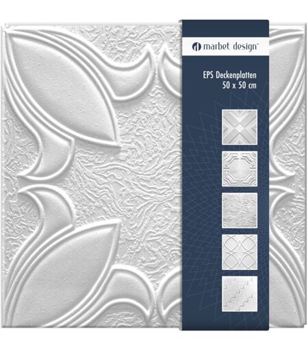 Marbet Design dalles plafond polystyrène EPS blanc 30 décors différents 50x50cm paquet économique: Irys, Forfait maximum (meilleur prix)