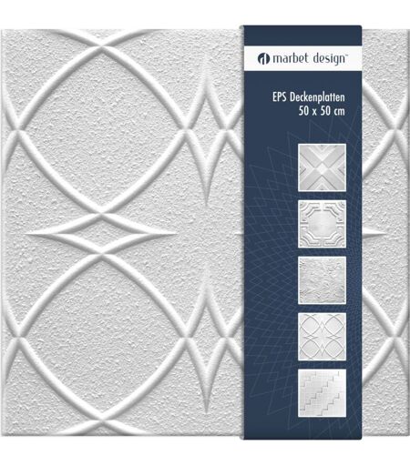 Marbet Design dalles plafond polystyrène EPS blanc 30 décors différents 50x50cm paquet économique: 10 m² / 40 plaques, Saturn