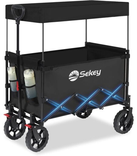 Sekey - Chariot pliable avec toit – charge max 150 kg – usage jardin/camping – Noir
