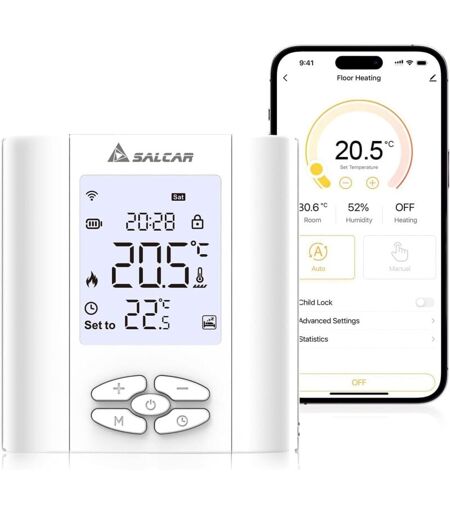 SALCAR Thermostat Connecté WiFi pour Chaudière Gaz/Chauffage au Sol Eau Compatible Amazon Alexa et Google Home