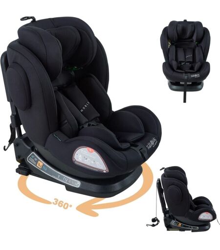 Description générale Le siège auto NOBLE de FableKids est conçu pour les enfants mesurant entre 40 et 150 cm. Ce siège rotatif à 360° offre une installation facile, que ce soit en position face à la route ou en reboarder. Homologué selon la norme de sécurité européenne i-Size ECE R129/03, il garantit protection et confort maximaux lors des trajets en voiture. Spécifications techniques Taille minimale de l'enfant : 40 cm Taille maximale de l'enfant : 150 cm Fixation : Isofix, Top Tether ou ceinture de sécurité Système de ceinture : harnais 5 points Rotation : 360° Protection contre les chocs latéraux : Oui Appuie-tête : réglable sur 8 positions Dimensions : 53 x 45 x 65 cm Poids : 13 kg Couleur : Noir Normes de sécurité : E57*129R03/06*0016 Contenu de la livraison : Siège enfant 360, coussin pour nouveau-né, capote pare-soleil, mode d'emploi Compatibilité et accessoires Compatible avec tous types de véhicules Inclut un pare-soleil réglable Cale-bébé pour nouveau-né inclus Installation ...