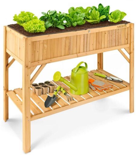 Arebos - Bac à plantes surélevé en bois avec étagère Jardinière Légumes Herbes