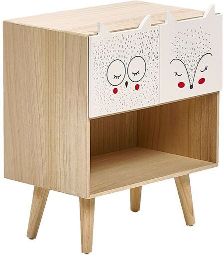 Beliani - Table de Chevet Moderne 2 Tiroirs Table de Nuit Thème Animalier Bois Clair et Blanc Rupert
