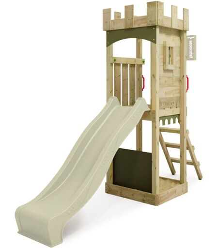 Tour de jeux Portique d'escalade TreasureTower avec toboggan, tour d'escalade avec bac à sable, Échelle & accessoires de jeu – vert sauge - Fatmoose