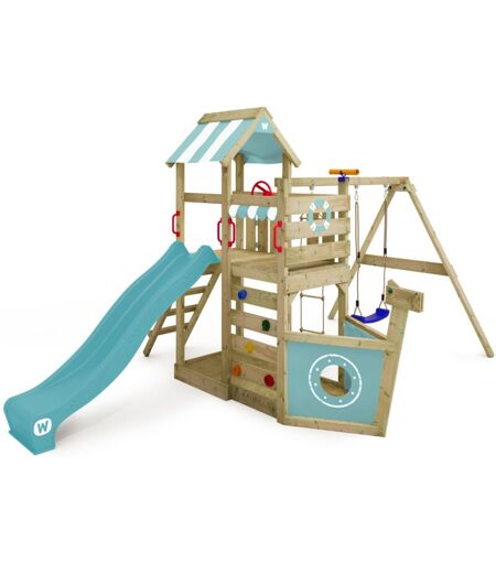 Wickey - Aire de jeux Portique bois SeaFlyer avec balançoire et toboggan Cabane enfant exterieur avec bac à sable, échelle d'escalade & accessoires