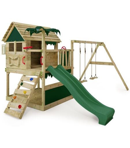 Tour de jeux Portique d'escalade TikaTaka avec toboggan & Balançoire, tour d'escalade avec bac à sable, Échelle & accessoires de jeu - vert - Fatmoose