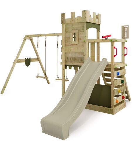Tour de jeux Château des chevaliers BoldBaron avec balançoire & Bac à sable, garantie 10 ans, Bac à sable intégré – vert sauge - Fatmoose