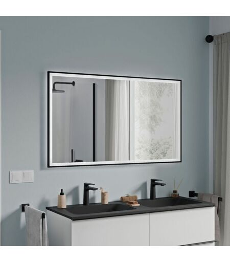 Bernstein - Miroir mural salle de bain rectangulaire 120x70cm anti-buée lumière led réglable dimmable détecteur mouvements cadre noir design - varo