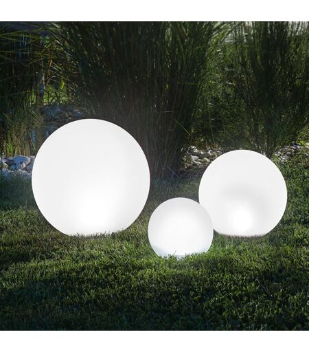 Le talent multifonctionnel ! Elle est enfin disponible, notre boule lumineuse solaire au design moderne en plastique. Elle est dotée de raffinements techniques particuliers tels qu'une télécommande IR, 10 couleurs de lumière réglables, une boule lumineuse en PMMA satiné, un module solaire puissant de 1,8 Wp à l'intérieur de la boule lumineuse et des LED super lumineuses alimentées par une batterie LiIon à haut rendement. Ainsi, la boule lumineuse peut être utilisée de manière optimale toute l'année et surprend même les jours d'hiver maussades avec une durée d'éclairage particulièrement longue. Nouvelle fonction CCT (Controlled Color Temperature) et multicolore À l'aide de la télécommande infrarouge fournie, vous pouvez adapter la couleur de la lumière de manière optimale à vos besoins et ambiances respectifs. La couleur de la lumière de cette boule lumineuse peut être réglée progressivement entre le blanc froid (6500 K), le blanc lumière du jour (4000 K) et le blanc chaud (3000 K), ...