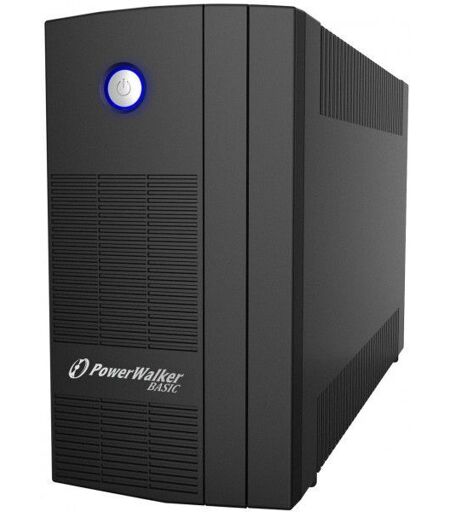 PowerWalker Basic VI 1000 SB. Topologie UPS: Interactivité de ligne, capacité de la puissance de sortie: 1 kVA, Puissance de sortie: 600 W. Types de sortie AC: Type F, Nombre de prises en sortie: 3 sortie(s) CA. Capacité de la batterie: 5 Ah, Tension des piles: 12 V, Temps de secours type au chargement complet: 1 min. Format: Tower, Couleur du produit: Noir, Type d'écran: LCD. Largeur: 110 mm, Profondeur: 315 mm, Hauteur: 189 mm ...