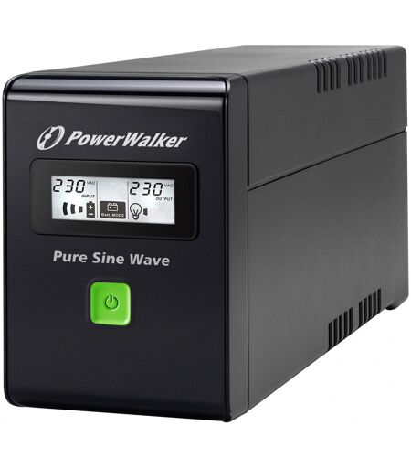 PowerWalker VI 800 SW FR. Topologie UPS: Interactivité de ligne, capacité de la puissance de sortie: 0,8 kVA, Puissance de sortie: 480 W. Types de sortie AC: Type E, Nombre de prises en sortie: 2 sortie(s) CA. Capacité de la batterie: 9 Ah, Tension des piles: 12 V, Temps de secours type à demi de charge: 5 min. Format: Compact, Couleur du produit: Noir, Vert, Type d'écran: LCD. Largeur: 100 mm, Profondeur: 328 mm, Hauteur: 145 mm ...