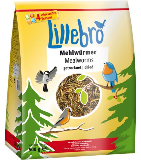 500g Vers de farine séchés pour oiseaux Lillebro - Alimentation pour oiseau