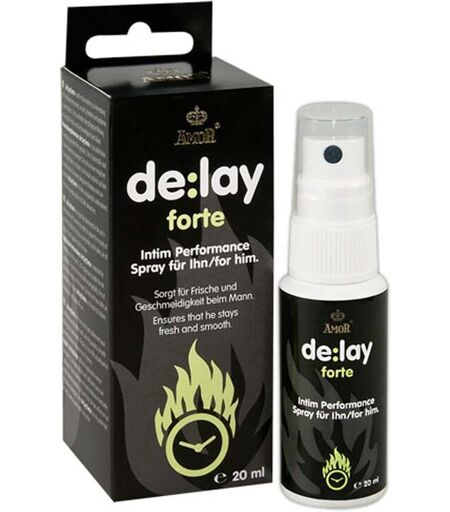 Développé comme un produit cosmétique, le Spray Retardant Delay Forte de Cobeco Pharma viendra rafraîchir la zone intime de l'homme pour retarder l'éjaculation tout en gardant son hypersensibilité ! Sans anesthésiant le spray Delay Forte viendra prévenir de toute sensibilité excessive sans réduire votre plaisir. Grâce à cette sensation de grande fraîcheur sur le pénis vous pourrez avoir un meilleur contrôle de votre excitation tout en profitant intensément des sensations. Utilisation : Appliquez 2 à 4 pulvérisations de Delay Forte sur le gland et le corps du pénis juste avant le rapport sexuel. Application externe uniquement. Ingrédients : Aqua, Glycerin, aureth-9, Alcohol Denat, Caprylyl Glycol, Avena Exttract, Hypericum Perforatum Extract, Menthyl PCA. ...