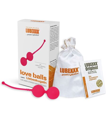 Les boules d'amour LUBEXXX® font travailler efficacement le plancher pelvien. Pour une musculature forte et solide. Pour augmenter la sensation de plaisir et prévenir la faiblesse du plancher pelvien. Très confortable à porter, silencieuse. Facile à utiliser et discret. En silicone de qualité. Le gel lubrifiant LUBEXXX® Original hydrate longtemps et donne une sensation agréable sur la peau. Recommandé par les gynécologues. Doux et soyeux. Fabriqué en Allemagne. Longueur totale du produit : env. 6 cmLongueur totale y compris la bande de rappel : env. 15 cmDiamètre : env. 3 cmPoids : par boule env. 45 g ...