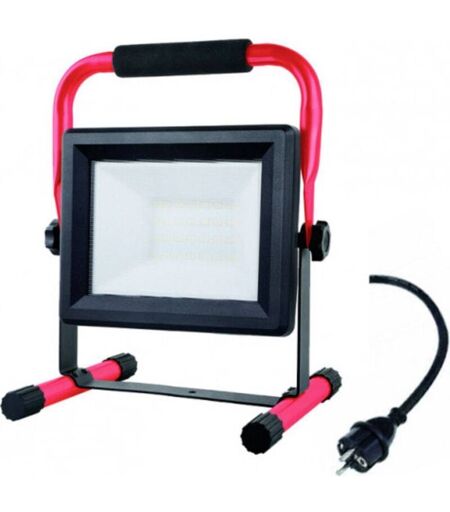 Informations techniques Classe d'efficacité énergétique 2021 : non pertinent Couleur : noir, rouge Couleur d'éclairage : 4000 K Couleur d'éclairage (ampoule LED) : blanc neutre Culot : LED intégrée Dimensions produit, hauteur : 175 mm Dimensions produit, largeur : 330 mm Dimensions produit, profondeur : 392 mm Flux lumineux total : 8000 lm Indice de protection : IP65 Longueur de la conduite d'alimentation : 1.5 m Matériau : aluminium, Verre (mat) Poids : 2161 g Puissance : 100 W Spécificités du projecteur de chantier : avec poignée Tension de fonctionnement : 230 V Type d'ampoule : LED Projecteur LED Floodlight Stand À la recherche d'une lampe de travail fiable ? Accédez ensuite au stand LED Floodlight MEGALlight ! Que ce soit pour la rénovation, le carrelage ou autre, profitez de notre éclairage de travail, que vous pouvez facilement et rapidement positionner où que vous soyez pour votre raccordement électrique. Grâce à la protection IP élevée de IP65, ce projecteur LED est protégé ...