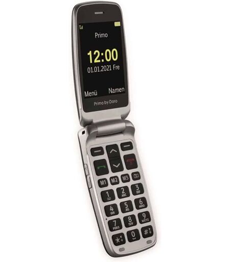 Doro Primo 408 de téléphone portable avec grand écran couleur, clavier lumineux, bouton d'urgence, capteur de chute, appareil photo, lampe torche, fonction d'alarme, avec station de charge de table, 360092 ...