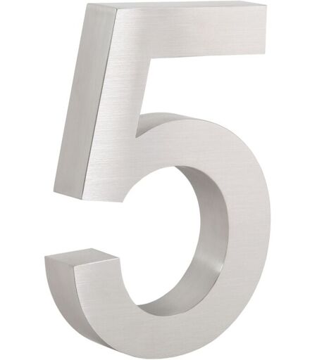 Numéro de maison Zelsius en acier inoxydable « 5 », 13 x 20 cm, argenté
