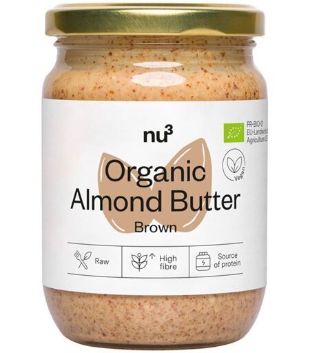 nu3 Crème d'amandes bio, complètesSavoureuse et onctueuse, notre crème d'amandes bio nu3 offre un plaisir gustatif sans compromis. Avec son goût aromatique et sucré, sans additifs inutiles, elle est parfaite à tout moment de la journée. Que vous dégustiez du pain et des beignets au petit-déjeuner, des pancakes au déjeuner ou un curry le soir, cette délicieuse crème crue de haute qualité est toujours un plaisir. Non seulement elle ravit le palais, mais elle constitue également une excellente source de protéines végétales, avec pas moins de 23 grammes pour 100 grammes de produit. Contrairement aux crèmes d'amandes conventionnelles, pleines d'additifs tels que la graisse de palme, le sucre et le sel, notre crème d'amandes noires nu3 se distingue par sa simplicité et sa pureté. Fabriquée exclusivement à partir d'amandes biologiques provenant d'Espagne et d'Italie, elle est le résultat d'un processus rigoureusement contrôlé, sans aucun traitement chimique. Chaque amande est moulue avec soin, afin de préserver son goût authentique et ses propriétés nutritives. Notre crème d'amandes est un excellent choix pour ceux qui recherchent un produit naturel et authentique, sans compromis sur la qualité. Notre crème à tartiner végétalienne est une alternative sophistiquée au beurre de cacahuète et à ses équivalents. Avec une texture qui fond délicatement dans la bouche, c'est une expérience gustative à ne pas manquer ! Découvrez le plaisir d'une crème à tartiner qui satisfait le palais et respecte votre choix d'un mode de vie végétalien. ...