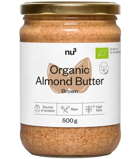 Il est important d'avoir une alimentation variée et équilibrée et un mode de vie sain.La purée d'amande brune de nu3 ne contient rien d'autre que des amandes crousitllantes de la plus haute qualité.Celle-ci sont délicatement décortiquées, moulues et enfin mises en bocaux en France. Leur particularité : leur transformation s'effectue à une température basse, inférieure à 42°C. Ainsi, les précieux nutriments sont conservés de façon optimale.Que ce soit en pâte à tartiner délicate et crémeuse, comme super ingrédient dans les pâtisseries ou pour une touche de noix dans des smoothies... avec la purée d'amande, vous rehaussez vos plats préférés d'une note d'amande délicieuse. La purée est une source de protéines super mais ausis l'ingrédient parfait pour des plats végétariens ou végétaliens.À propos : Il est tout à fait normal que l'huile d'amande se dépose à la surface de temps en temps. Il suffit de mélanger brievement avant de l'utiliser - c'est prêt !Composition:Amandes*,** (100 %)* Issu de l'agriculture biologique** Italie, EspagneValeur nutritionnelle: Pour 100 gÉnergie2584 kJ / 617,59 kcalGraisse dont acides gras saturés55 g-Glucides dont sucres5,6 g5,6 gFibres8 gProtéines23 gSel0,01 g Conseil d'utilisation: Prêt à utiliser. À conserver dans un endroit sec et frais.Précautions d'emploi:Peut contenir des traces de noix et de sésame.Poids net:500 gFabricant:nu3Brückenstr. 510179 BerlinAllemagne ...