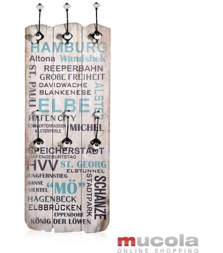 Melko - Porte-manteau mural avec 6 patères et motif en bois