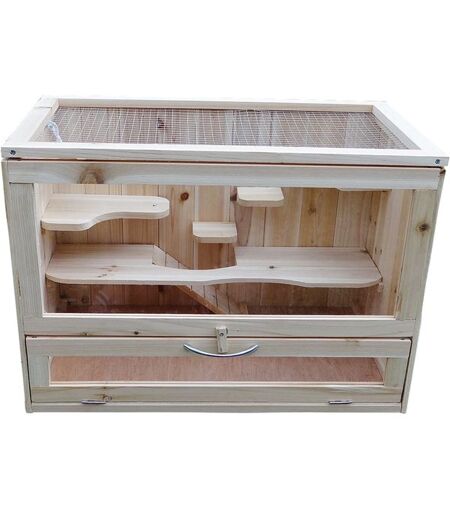 Melko - Cage pour petits animaux en bois, 60 x 35 x 42 cm, avec rampe pliable, 5 étages, cage à rongeurs villa hamster cage à souris